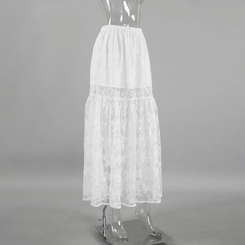 A timeless staple with a modern twist, this chic A-line midi skirt is crafted in a lightweight fabric, breathable feel — perfect for any season. Designed with delicate lace accents and a flattering mid-length cut, it offers effortless elegance that moves seamlessly from day to night.